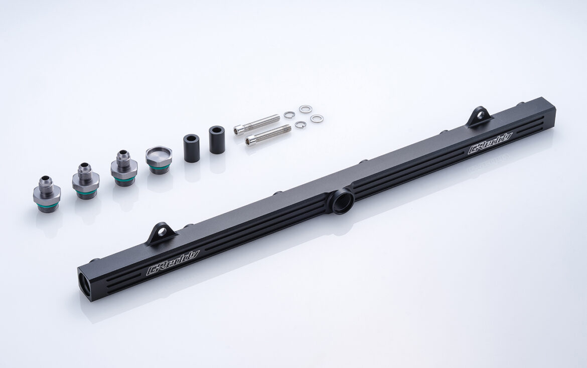 This is a fuel delivery tube for top-feed injectors. A union can also be installed in the center of the delivery tube, allowing for a return line connection from the center when fuel is supplied from both ends of the delivery tube. The tube body is made of aluminum with anodized finish, available in two colors: black and blue.