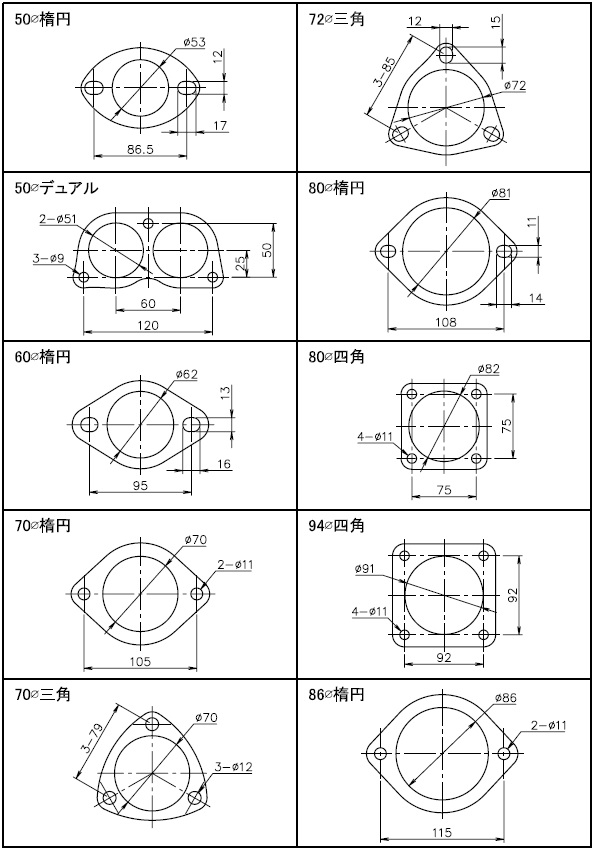 72φ Triangle | 11000316 | ¥880 | ¥800 | Used for turbine outlet (front pipe side) |